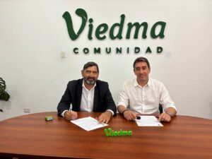 El intendente Marcos Castro junto al vicerrector de la Universidad Nacional de Río Negro, Daniel Barrios, firmó el convenio de cooperación para ofrecer nuevas oportunidades de formación académica y capacitación para trabajadores y trabajadoras de la Municipalidad de Viedma.
