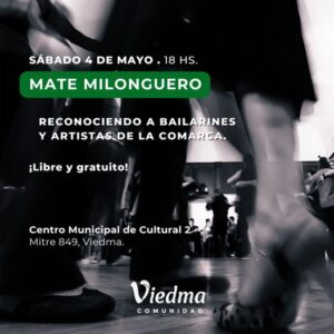 La Municipalidad de Viedma informó la realización de un nuevo «Mate Milonguero», que se llevará a cabo este sábado 4 de mayo a las 18 en el Centro Cultural II.