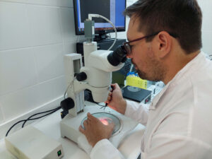 En el Laboratorio de Reproducción Animal de INTA Chubut, se trabaja en la obtención embriones a partir de ovocitos de corderas pre púberes. Se evalúa la fertilización in vitro y su aplicación en ejemplares en edad gestacional.
