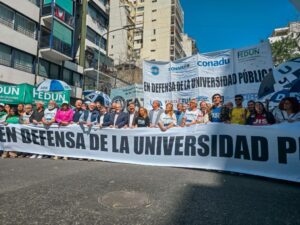 Asimismo, se leyó un documento unificado del Frente Sindical de Universidades Nacionales, el CIN y la FUA. Entre sus párrafos indica: “Esta ley aprobada por el Congreso en un acto de responsabilidad y compromiso, le da al sistema universitario previsibilidad presupuestaria y a la crítica situación salarial una respuesta, estableciendo un piso de incremento acorde a la inflación y recuperando el poder adquisitivo del salario. Es una ley que resuelve los problemas responsablemente, porque NO compromete fiscalmente al Estado, demandando solo el 0,14 % del PBI para su implementación”.