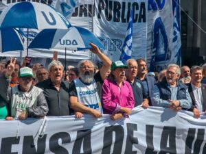 Oscar Vallejos, secretario adjunto de CONADU Histórica, indicó: “No hay país sin universidad. Eso es lo que expresa el pueblo en las calles. Si Milei mira claramente cómo se están dando las defensas, la distribución social y la diversidad en la universidad, retrocederá, promulgará la ley… si así no ocurre, le corresponde entonces a las diputadas y diputados, a los senadores y senadores. Y eso es lo que estamos expresando en las calles”.