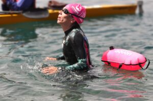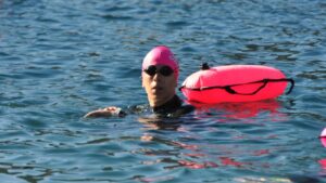 Samanta Guiñazu es docente e investigadora de la UNRN Sede Andina. Hace unos días ganó una carrera de 10 kilómetros en aguas abiertas. Todo un desafío. Mientas nada, resuelve problemas del trabajo. Ahora promueve una encuesta sobre personas en situación de calle en Bariloche.