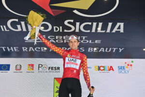 Maglia Giallo Rossa ( amarilla/roja ) , líder de la Clasificación General, patrocinada por Regione Siciliana – Finn Fisher-Black (UAE Team Emirates)