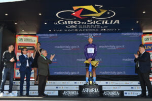 Maglia Ciclamino (Ciclamen), líder de la Clasificación por Puntos, patrocinada por Agenzia ICE con la marca Madeinitaly.gov.it – Vincenzo Albanese (Eolo-Kometa Cycling Team)