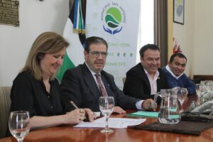 Acompañaron la firma junto al intendente Adrián Casadei, la Decana del CURZA Dra. Adriana Goicochea, el Vicerrector de la Universidad del Comahue Paul Osovnikar junto a demás autoridades universitarias y funcionarios del poder ejecutivo y legislativo local.