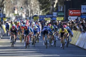 A 30 km de la meta, Alexis Gougeard es el primero en perder el contacto, seguido rápidamente por Pascal Eenckhoorn y luego Pierre Latour, que deja que la fuga de 5 corredores se aferre a una ligera ventaja. A falta de 15 km para el final, solo tienen un margen de 15”, con la perspectiva de un sprint intermedio en el primer cruce de la línea de meta. Aguantaron hasta “la campana” con una ventaja de 8”, pero fueron absorbidos a falta de 9,5 km para el final. Luego es el momento de preparar un sprint masivo, con los equipos de los velocistas configurando sus respectivos trenes. El Lidl-Trek sigue siendo el más visible, y los Tudor se ponen ahora al servicio de Matteo Trentin. Los maillots amarillos de Visma no rompieron la pantalla al principio, pero Olav Kooij estuvo allí para el grupo final, colándose para colocar su máxima aceleración en los últimos 100 metros y adelantar a Mads Pedersen.