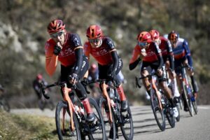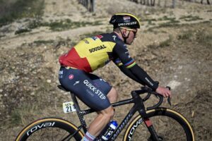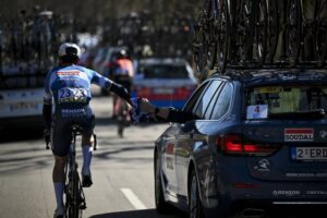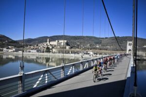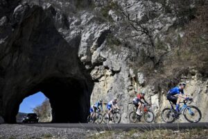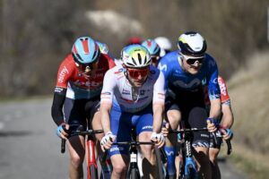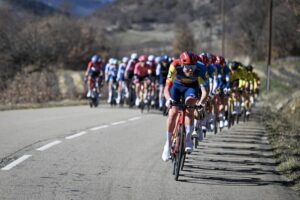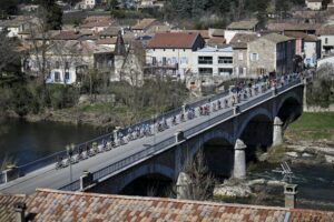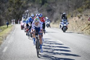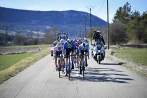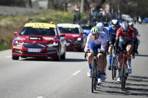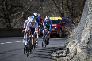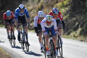 se retira La fuga está controlada hasta la segunda subida clasificada del día, que conduce al Col de Peyruergue. Fue precisamente en el km 114 cuando Victor Campenaerts y Pascal Eenkhoorn (Lotto-Dstny) se escaparon del pelotón en el contraataque y se unieron al líder de la carrera en la subida, mientras que el pelotón estaba a solo un minuto. La persecución toma un ritmo diferente con un grupo reforzado en la parte delantera. David Gaudu, en el papel de compañero de equipo de Laurence Pithie, participó en la persecución para Groupam-FDJ, mientras que el Lidl-Trek de Pedersen fue el más activo, con el Visma de Olav Kooij. Por otro lado, los Tudor ya no podían contar con su ganador de Montargis, Arvid De Kleijn, quien se retiró a dos tercios de la etapa. En el Col de Pigière, la última subida clasificada, la ventaja de los 8 corredores de cabeza es de sólo 45”.