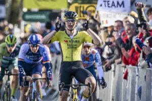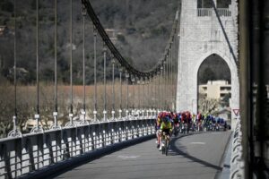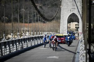 A 30 km de la meta, Alexis Gougeard es el primero en perder el contacto, seguido rápidamente por Pascal Eenckhoorn y luego Pierre Latour, que deja que la fuga de 5 corredores se aferre a una ligera ventaja. A falta de 15 km para el final, solo tienen un margen de 15”, con la perspectiva de un sprint intermedio en el primer cruce de la línea de meta. Aguantaron hasta “la campana” con una ventaja de 8”, pero fueron absorbidos a falta de 9,5 km para el final. Luego es el momento de preparar un sprint masivo, con los equipos de los velocistas configurando sus respectivos trenes. El Lidl-Trek sigue siendo el más visible, y los Tudor se ponen ahora al servicio de Matteo Trentin. Los maillots amarillos de Visma no rompieron la pantalla al principio, pero Olav Kooij estuvo allí para el grupo final, colándose para colocar su máxima aceleración en los últimos 100 metros y adelantar a Mads Pedersen.