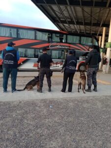 El procedimiento se desarrolló durante la mañana, contando con la colaboración de personal de canes antinarcóticos, quienes realizaron inspecciones en unidades de transporte de larga distancia y en sectores destinados a encomiendas.