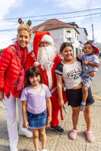 Como todos los años, Papá Noél volvió a recorrer las calles de Bariloche. Las niñas, niños y sus familias se acercaron para contarle sus deseos en estas fiestas, sacarse fotos y disfrutar de unas ricas golosinas.