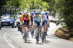 Una escapada formada por Brandon Rivera (Ineos Grenadiers), Madis Mihkels (EF Education-EasyPost), Antonio Tiberi (Bahrain Victorious), Harold Tejada (XDS Astana Team), Patrick Gamper (Jayco-AlUla), Luca Van Boven (Intermarché-Wanty), Timo Roosen (Picnic-PostNL) y Jonas Gregaard (Lotto), a la que han podido alcanzar Joel Nicolau (Caja Rural-Seguros RGA), Léandre Lozouet (Arkéa-B&B Hotels), Sergio Samitier (Cofidis) y Gijs Leemreize (Picnic-PostNL) tras 35 kilómetros de carrera, ha sido el catalizador para consolidar la fuga del día de doce unidades, que el equipo Visma-Lease a Bike del líder ha intentado controlar desde el primer momento.