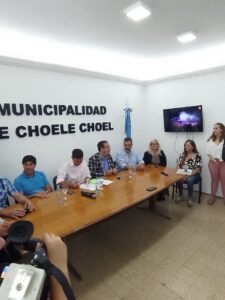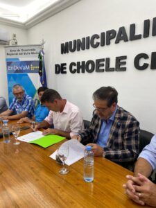 En horas de esta mañana el Intendente, Adrián Casadei, junto al Intendente Municipal de Choele Choel, Diego Ramello, y en representación del Ente de Desarrollo Regional del Valle Medio (ENDEVAM) Víctor Hugo Mansilla y Horacio Rodolfo Martínez, Presidente y Gerente Ejecutivo respectivamente, llevaron a cabo la firma de un convenio de colaboración y cooperación mutua entre las partes.