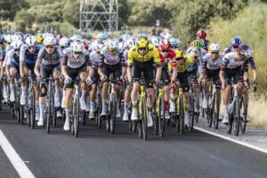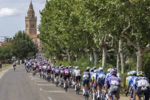 Mario Aparicio y Sergio Chumil (Burgos-Burpellet-BH) han intentado sorprender en la entrada de los últimos 40 kilómetros de etapa, un movimiento que ha sido rápidamente neutralizado por un pelotón enfilado ante la posibilidad de cortes que ha intentado provocar de nuevo un muy activo Jonas Vingegaard. La tensión se ha convertido en calma tensa a la aproximación a Guijuelo, donde los grandes equipos han protegido su posición antes de la llegada de la lucha por la etapa.