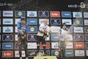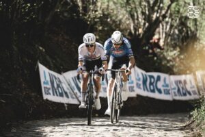 La carrera se decantó por completo en la segunda ascensión al Oude Kwaremont. Pogačar lanzó una aceleración fulgurante, a la que solo Van der Poel, Evenepoel, Van Aert y Pedersen (Lidl – Trek) pudieron responder. Estos dos últimos tuvieron que abandonar justo antes de la cima, dejando a un trío de élite rumbo a la primera subida al Paterberg. Allí, Evenepoel también tuvo que ceder terreno, lo que permitió a Van der Poel y Pogačar disputar juntos el decisivo final.