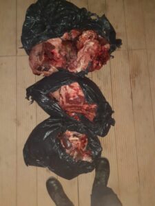En uno de los controles, fue divisada una camioneta proveniente de la ciudad de 25 de Mayo, La Pampa. Se constató que en el interior del rodado transportaba 250 kilos de productos cárnicos sin las medidas de higiene correspondientes, por lo que se procedió a su decomiso.