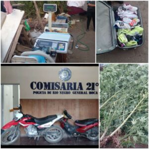 Policía secuestró plantas de marihuana, dos motos y detuvo a tres personas en un allanamiento en Roca