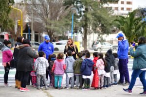 En primer lugar, el grupo recibió la charla teórica por parte de Personal de la Dirección de Tránsito donde se comparten contenidos relacionados a conocimientos básicos sobre cómo circular en la vía pública siendo peatón, pasajero o conductor, y cuáles son los aspectos y responsabilidades de cada uno, buscando entre los y las más pequeñas, la autonomía necesaria y una toma de decisiones responsable al momento de transitar en la vía pública.