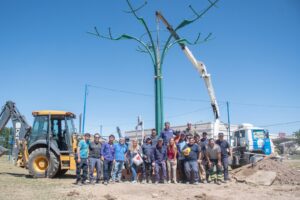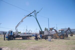 El Municipio de Roca está instalando el primer Árbol Solar de Roca en el nuevo Predio Ferial de calle Tronador 260, donde el próximo fin de semana se va a llevar adelante el Festival de la Sidra 2024.