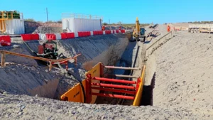 En esta primera etapa se inició y finalizó la perforación testigo. Las próximas tareas contemplan la ampliación progresiva del túnel hasta alcanzar el diámetro final de 44 pulgadas.