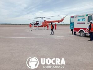 Sierra Grande. – En el día de la fecha, en el marco del Proyecto VMOS, se llevó adelante un simulacro de rescate y emergencia en la Punta Colorada, con la participación de un helicóptero de rescate y ambulancias de la empresa MILICIC.