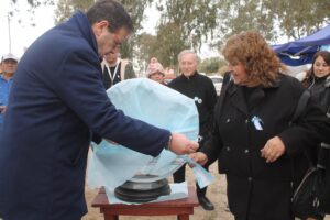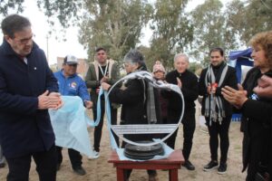 Sobre el final, se realizó el descubrimiento de una nueva escultura que acompañará los eventos de tejo, la cual está confeccionada con materiales reciclables.