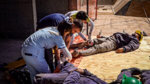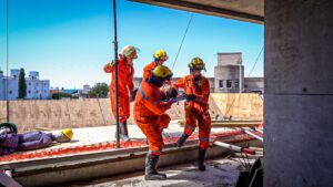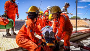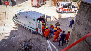 Este miércoles 8 de noviembre aproximadamente a las 10:30 am. Aspa llevó a cabo un nuevo simulacro de accidente y rescate; en esta oportunidad en el proyecto Torre Tonina, ubicado en el complejo Mareas del Golfo de la localidad de Las Grutas.