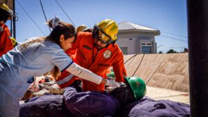 En esta oportunidad, se trabaja sobre la hipótesis de rescate y atención de 4 heridos con diferentes niveles de gravedad. Esta acción se desarrolla en tiempo real, y sin conocimiento de los actores involucrados para poder evaluar y medir sobre condiciones lo más reales posible. Intervinieron, además de los colaboradores de Aspa, Bomberos Voluntarios de Las Grutas, personal del Hospital de las Grutas, de la Delegación municipal, de Tránsito Municipal y de la Comisaria 29° de Las Grutas.