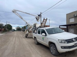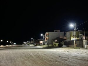 Personal municipal realizó en Las Grutas los trabajos en el marco de la primera etapa de reconversión de alumbrado público de barrios por luminarias LED, con una inversión inicial de 3 millones de pesos.