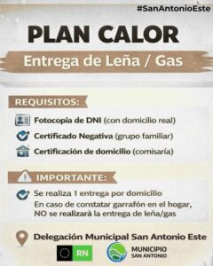 Desde la Delegación Municipal de San Antonio Este, en conjunto con la Secretaría de Desarrollo Humano, informamos a la comunidad que se encuentra abierta la reinscripción para acceder al beneficio de entrega de leña o gas, destinado a acompañar a las familias durante la temporada invernal.