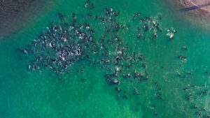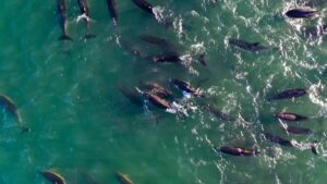 Vecinos, vecinas y turistas de la zona rescataron a más de 300 delfines que habían quedado varados en la arena tras huir de sus depredadores.