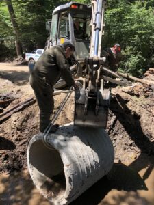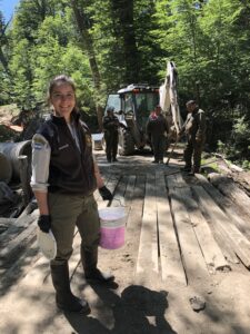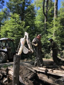 En el marco de las tareas de preparación del sitio, previo al trabajo de reemplazo mencionado, desde el área Biología de la Conservación de la División Conservación y guardaparques de la Unidad Operativa Zona Centro, se trabajó en la reubicación cercana y a resguardo de ejemplares de la Rana Palmada de Arroyo (Alsodes Gargola) encontrados en el lugar.