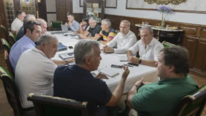 Participaron los secretarios Medios, Lucas Ottolini; y de Legal y Técnica, Milton Dumrauf; y se sumaron el jefe de la Casa de Río Negro en Buenos Aires, Luis Di Giacomo; la subsecretaria de la Unidad Provincial de Enlace con las Universidades (UPEU), Daiana Neri; el presidente de en la Empresa de Desarrollo Hidrocarburífero Provincial S. A. (Edhipsa), Martín Herrero; y el titular de la Unidad Provincial de Coordinación y Ejecución del Financiamiento Externo (UPCEFE), Martín Camiña.