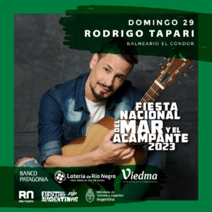 El domingo 29 de enero a partir de las 22.30, el cierre de la Fiesta Nacional del Mar y el Acampante estará a cargo del reconocido cantante de música tropical Rodrigo Tapari.