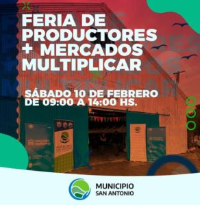 El sábado 10 de febrero de 9:00 a 14:00 hs, en el predio ubicado entre las calles Victoria y Güemes de San Antonio Oeste, se realizarán las ferias “De la Chacra a su Mesa” y “Mercados Multiplicar”.