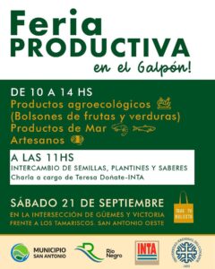 La Feria Productiva abarcará desde la venta de productos agroecológicos (bolsones de frutas y verduras), productos de mar y artesanales. En simultáneo mientras se realiza la feria, a las 11:00 hs se brindará una charla informativa sobre la producción de semillas y plantines que incluirá también el intercambio de estas. Seguidamente a las 12:00 se dará lugar a la charla sobre el uso medicinal con aceites y derivados de cannabis, en el marco regulatorio de la Ordenanza N°5.834.