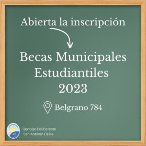 El Concejo Deliberante San Antonio Oeste, informa que a partir del lunes 27 de febrero y hasta el viernes 10 marzo inclusive estará abierta la inscripción para aspirantes a la beca estudiantil municipal.