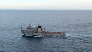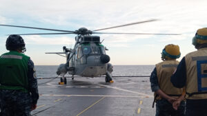 En esta oportunidad, el helicóptero trasladó a las autoridades que arribaron al buque en horas de la tarde del jueves, para supervisar a bordo el estado operativo previo a la Campaña Antártica. Con una recorrida por la unidad pudieron constatar las distintas capacidades, equipos e instalaciones al tiempo que dialogaron con los jefes de cada área. El mismo día se produjo el encuentro con el aviso ARA “Puerto Argentino” que se encontraba navegando rumbo al norte y que también formará parte de la CAV 2024-2025.