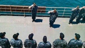 El día viernes a 12:00 hs, en coincidencia con la fecha conmemorativa de la última comunicación realizada por el submarino ARA “San Juan”, se realizó una ceremonia de la que participó todo el personal a bordo del RHAI. Tuvo lugar en la cubierta N°5 y fue presidida por el Comandante de dicha Unidad, Capitán de Navío Sebastián Alejandro Musa