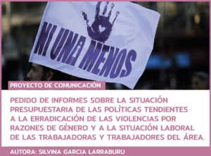 La Senadora Silvina García Larraburu presentó un proyecto de comunicación manifestando su preocupación por el desfinanciamiento de las políticas contra las violencias hacia las mujeres y LGBTI+, que sigue siendo una problemática gravísima en nuestro país.