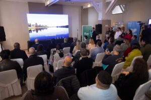 Durante la presentación, se destacó un video que resalta las bondades de Viedma como destino turístico y de inversión.