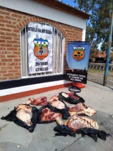 Asimismo, en otro procedimiento, se incautó un ternero faenado que era transportado en un auto. El conductor oriundo de General Roca, al ser consultado si llevaba armas o carnes, procedió a exhibir de manera voluntaria, el baúl y el habitáculo donde se halló la carne.