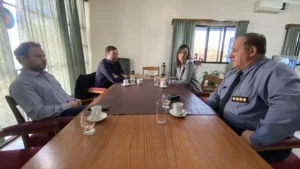 Participaron del encuentro el secretario de Justicia, Mariano Sacchetti, y el jefe de la Policía de Río Negro, Comisario General Osvaldo Tellería, al tiempo que también se llevó a cabo una presentación formal del nuevo Comisario de la Unidad 26, Renzo Fortunatti, tanto al intendente Lavín como a la Cámara de Comercio y productores locales.