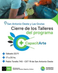 El programa CapacitArte es impulsado por el Ministerio de Desarrollo Humano, Deporte y Cultura de la Provincia de Río Negro y se desarrolla en nuestra localidad gracias al trabajo articulado con la Secretaría de Desarrollo Humano del Municipio de San Antonio.