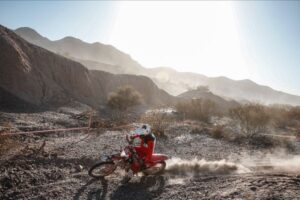 Los pilotos repitieron los mismos 220 kilómetros del “Red Loop” que habían transitado ayer, por lo que se encontraron con caminos que estaban mucho más rotos que ayer y con sectores muy complicados en los que los pilotos tuvieron que poner en práctica todas sus habilidades y cuidar mucho a sus motos.
