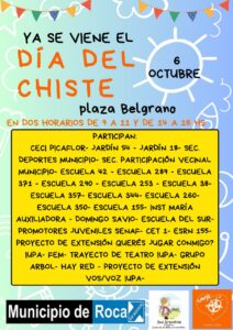 General Roca.-En el marco de un nuevo “Día del Chiste” se celebra nuevamente la risa y el humor, este próximo viernes 6, en la Plaza Belgrano.