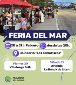 El viernes 20 y sábado 21 de febrero, desde las 20 hs, te esperamos en el Balneario “Los Tamariscos” de San Antonio Oeste para disfrutar de dos noches a puro encuentro, música y propuestas para toda la familia