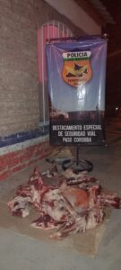 Personal del Cuerpo de Seguridad Vial de Paso Córdoba secuestró 35 kilogramos de carne y un arma de fuego, durante un operativo de control vehicular y de identificación de personas.