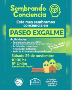 Invitamos a la comunidad a participar de “Sembrando Conciencia”, una jornada de reflexión y encuentro que se realizará el sábado 29 de noviembre, a las 10 hs, en el Paseo de la Ex Galme, sobre la costanera de San Antonio Oeste.