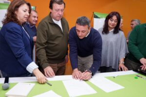 Del encuentro participaron la ministra de Salud, Ana Senesi; la ministra de Educación y Derechos Humanos, Patricia Campos; la secretaria de Energía y Ambiente, Andrea Confini; la intendenta de Sierra Grande, Roxana Fernandez; el Gerente de Asuntos Públicos de YPF para Neuquén y Río Negro, Federico Califano; y el Director Ejecutivo de la Fundación YPF, Gustavo Schiappacasse.