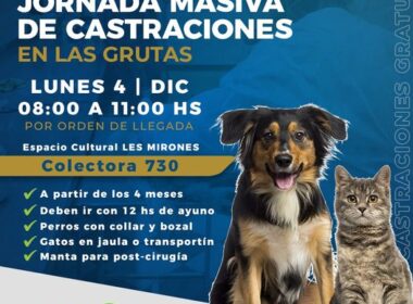 El lunes 4 de diciembre, en el Espacio Cultural “Les Mirones” (Colectora 730), se realizará una nueva jornada de castraciones masivas en la localidad de Las Grutas destinada tanto para perros como para gatos.